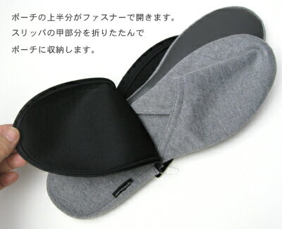 スリッパのシルエットのポーチに収納 底面は1cm程度の厚みがあり、かかと部分はややしっかり、 前部分はやや柔らかく作られています。