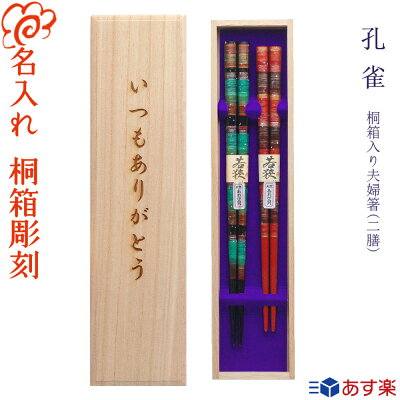 箸 結婚祝いに最適【あす楽対応】名入れ 桐箱彫刻無料 夫婦箸【孔雀】桐箱入り 二膳セット 青系23cm・赤系21cm/あわび貝使用/高級 お箸/名入れ 名入り 名前/ギフト プレゼント 贈り物/誕生日/入学 卒業 卒園/母の日 父の日 いい夫婦の日 ペア カップル/おしゃれ 綺麗なお箸