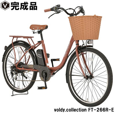 【キャッシュレス5%還元店】電動自転車 電動アシスト自転車 26インチ 完成品 シマノ外装6段変速 3モードアシスト 蓋付き大型カゴ voldy.collection FT-266R-E